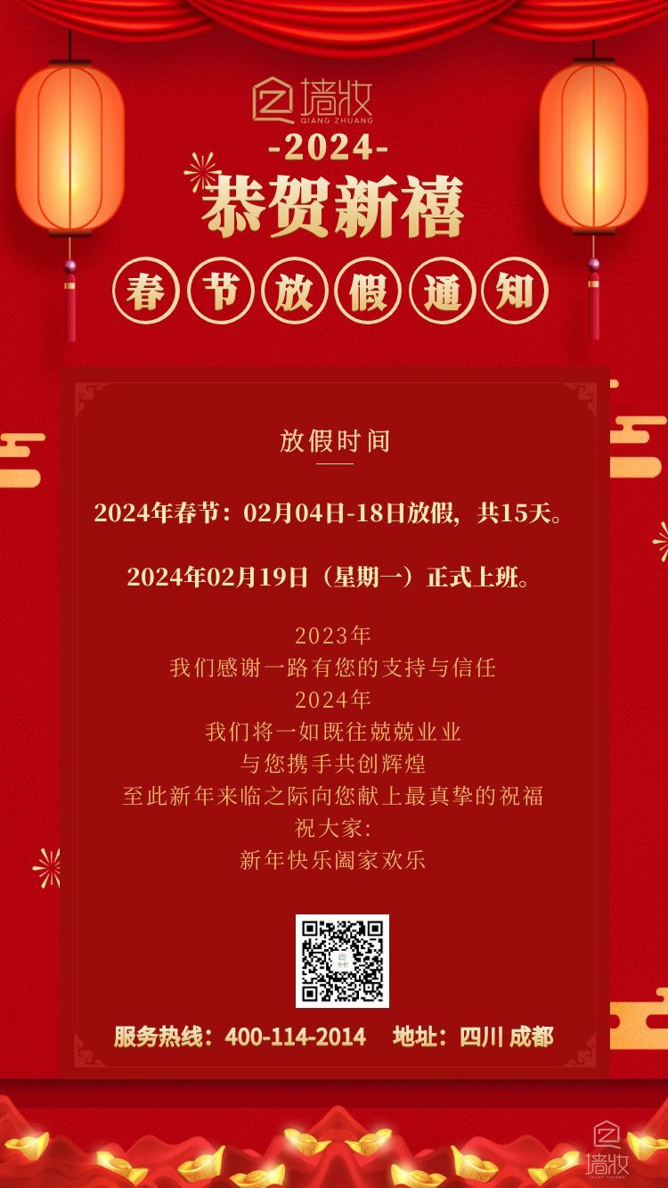 2024元旦四川墻妝放假通知
